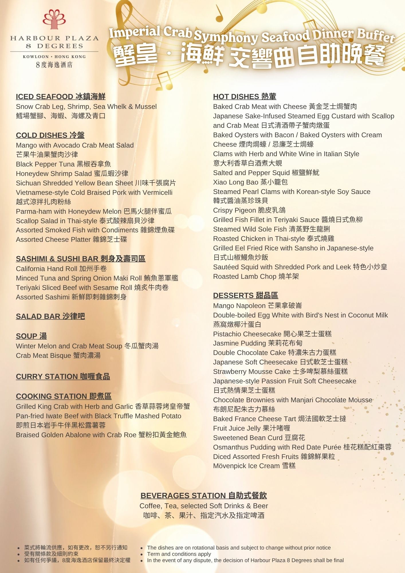 •菜式将轮流供应,如有更改,恕不另行通知