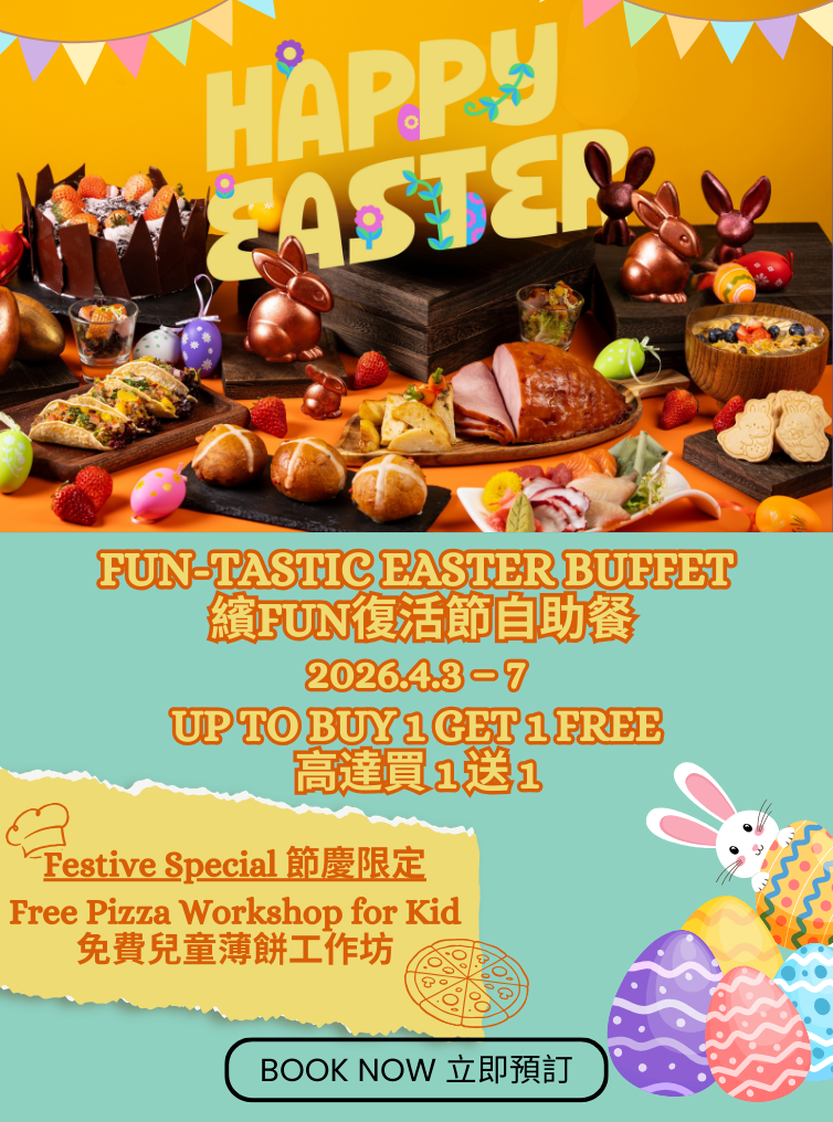 繽FUN復活节自助餐為食客带来别具一格的拉丁美洲料理及节日美饌。凡惠顾自助餐,每位客人获赠意大利风乾火腿鲍鱼挞一客。5 - 11岁的小朋友可以於指定时段免费参加「我是小厨神 – 薄饼工作坊」,即场製作薄饼,尽情投入节日气氛! 自助餐无限量供应菠菜芝士忌廉焗蠔、Movenpick®雪糕,无限畅饮精选红 / 白酒及汽水。经eShop预订即享买1送1 / 高达55折优惠及赚取易赏钱积分,立即预订!